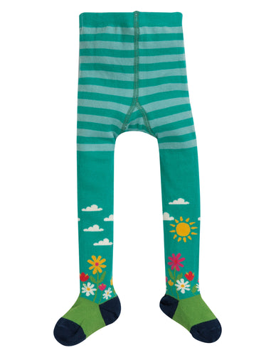 Little Norah Tights - Bright Aqua/Flower Garden